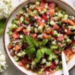 A refreshing and vibrant Persian Shirazi Salad made with diced tomatoes, Persian cucumbers, red onion, fresh herbs, and a tangy lime-sumac dressing. This easy no-cook salad is perfect as a light side dish or accompaniment to grilled meats and kebabs, offering crisp textures and a bright, zesty flavor.