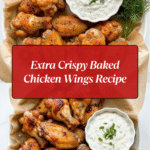 These Extra Crispy Baked Chicken Wings are perfectly seasoned and baked to golden, crunchy perfection using a baking powder coating method. The wings are baked at a high temperature, flipped frequently for even crispness, and served with a creamy homemade ranch dressing featuring Greek yogurt, mayonnaise, sour cream, fresh herbs, and a hint of lemon. A healthier alternative to fried wings, they deliver maximum flavor and crispy texture straight from the oven.