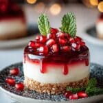 Delight in these Festive Pomegranate-Glazed Cheesecake Domes featuring a crunchy graham cracker base, a light peppermint-infused cream cheese filling, and a glossy pomegranate glaze topped with fresh pomegranate arils and mint. Perfect for holiday celebrations or elegant dessert occasions, these no-bake cheesecake domes offer a refreshing and visually stunning treat.