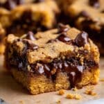 These fudgy pumpkin chocolate chip bars, also known as pumpkin blondies, combine the warm flavors of pumpkin and pumpkin pie spice with melty chocolate chips for a delicious fall treat. Soft, moist, and full of cozy spices, they’re perfect for a snack or dessert any time of year.