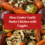 This Garlic Butter Chicken Crockpot recipe is a simple, hands-off way to create a flavorful and comforting meal. Tender chicken, baby potatoes, and carrots slow-cooked in a rich garlic butter sauce make it perfect for busy days or cozy dinners.
