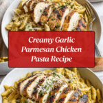 Garlic Parmesan Chicken Pasta is a rich and creamy dish that combines tender chicken with a luscious garlic-infused Parmesan sauce. It’s a comforting meal that’s quick to prepare, perfect for satisfying weeknight dinners or special occasions.
