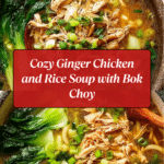 This Ginger Chicken and Rice Soup with Bok Choy is a warm, comforting bowl full of bright flavors and wholesome ingredients. Perfect for chilly days or when you need a nourishing meal, this soup combines tender chicken, fragrant ginger, and fresh greens in a savory broth.