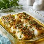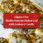 This Gluten-Free Mediterranean Baked Cod with Lemon and Garlic features a perfectly seared and oven-baked cod fillet, coated with aromatic spices and finished with a vibrant lemon-garlic sauce. The dish is light, flavorful, and garnished with fresh parsley for an authentic Mediterranean touch.