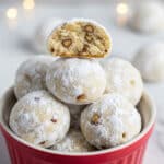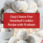 These Gluten Free Snowball Cookies are tender, buttery treats coated in powdered sugar, perfect for those avoiding gluten. Made with a 1:1 gluten free baking flour blend and chopped walnuts, they offer a delightful nutty crunch and melt-in-your-mouth texture. Ideal for holidays, celebrations, or anytime you’re craving a classic snowball cookie without gluten.