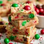 Keywords: Christmas cookie bars, gooey cookie bars, holiday treats, festive cookies, M&M cookie bars, easy holiday dessert