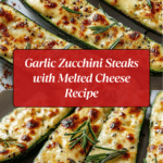 Gourmet Garlic Zucchini Steaks with Cheese are a delicious and easy-to-make vegetable dish featuring tender zucchini slices cooked with fragrant garlic, a hint of crushed red pepper flakes, and topped with melted mozzarella and Parmesan cheese. Perfect as a savory side or a light vegetarian main course, these zucchini steaks are baked and broiled to achieve a golden, cheesy finish, garnished with fresh basil for a burst of fresh flavor.