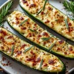 These gourmet garlic zucchini steaks are a flavorful and elegant way to enjoy fresh zucchini. Topped with melted mozzarella and Parmesan, and finished with fragrant garlic and basil, they make a perfect side dish or light meal.