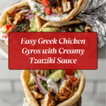 Discover the vibrant flavors of Greece with this family recipe for Greek Chicken Gyros with Creamy Tzatziki. Juicy marinated chicken thighs are grilled to perfection and wrapped in warm pita bread with fresh vegetables and a cooling tzatziki sauce. It’s perfect for a flavorful, satisfying meal any day of the week.