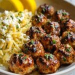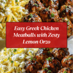 This Greek Chicken Meatballs with Lemon Orzo recipe offers a flavorful Mediterranean-inspired dish, combining tender baked chicken meatballs infused with fresh herbs and lemon zest, paired with a bright and creamy lemon orzo enriched with feta cheese and fresh parsley. It’s a wholesome and easy-to-make meal perfect for weeknight dinners.