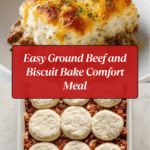Ground Beef and Biscuit Bake is a comforting and hearty meal perfect for busy weeknights. This easy casserole combines a savory beef and vegetable filling topped with fluffy biscuits and melted cheddar cheese. It’s a one-dish dinner that the whole family will love.