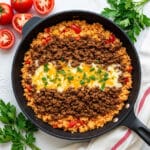 This Ground Beef and Rice Skillet recipe is a hearty, all-in-one meal perfect for busy weeknights. Combining lean ground beef with tender rice, sautéed vegetables, and savory spices, it’s cooked entirely in a single skillet for easy cleanup. Topped with melted cheddar cheese, this comforting dish delivers balanced flavors and satisfying textures in under 40 minutes.
