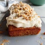 A wholesome and moist Healthy Oatmeal Carrot Cake Loaf made with ripe bananas, rolled oats, and shredded carrots, sweetened naturally with maple syrup, and topped with a creamy vanilla yogurt and cream cheese frosting. Perfect for a nutritious breakfast or a guilt-free dessert.