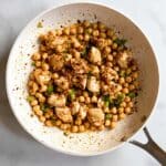 Keywords: high-protein chicken, spicy chicken chickpeas, quick chicken recipe, healthy Mediterranean chicken, chicken and chickpeas sauté