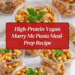This High-Protein Vegan ‘Marry Me Pasta’ is a flavorful, nutrient-dense meal-prep recipe combining lentil pasta with a creamy cashew and nutritional yeast sauce, infused with smoky spices, sun-dried tomatoes, and fresh greens. Perfect for vegan and plant-based eaters seeking a satisfying, protein-rich dinner that’s easy to prepare ahead of time.