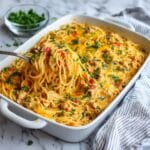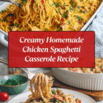 This homemade chicken spaghetti is a comforting and cheesy casserole perfect for weeknight dinners. Tender chicken, flavorful sauce, and melted cheese come together for a satisfying meal that the whole family will love.