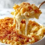 This homemade mac and cheese recipe features creamy, cheesy sauce made with a blend of mild and sharp cheeses, enveloping perfectly cooked elbow macaroni. Topped with buttery toasted breadcrumbs and baked to a golden bubbly perfection, it’s a comforting classic that’s easy to prepare and sure to please the whole family.