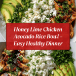 This Honey Lime Chicken & Avocado Rice Bowl is a vibrant and healthy dinner option packed with protein and fresh flavors. With a tangy honey lime marinade and creamy avocado, it’s perfect for a quick weeknight meal that feels both nourishing and satisfying.