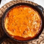 - Layer the Jiffy Mixture: Use an ice cream scoop to evenly portion the Jiffy batter on top of the meat mixture in the cast iron skillet. Spread it out evenly with a knife if desired.