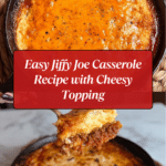 Jiffy Joe is a comforting, hearty casserole that combines savory ground beef with a cheesy Jiffy cornbread topping. It’s easy to prepare and perfect for a family dinner when you want something satisfying and flavorful.