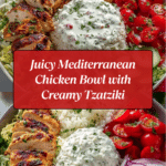 This Juicy Mediterranean Chicken Bowl with Rice is a vibrant, flavorful meal perfect for any night of the week. Marinated chicken, fresh vegetables, and a creamy tzatziki sauce come together to create a balanced and satisfying dish.