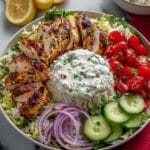 This Juicy Mediterranean Chicken Bowl with Rice is a vibrant, flavorful meal perfect for any night of the week. Marinated chicken, fresh vegetables, and a creamy tzatziki sauce come together to create a balanced and satisfying dish.