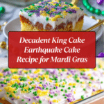 King Cake Earthquake Cake is a delightful dessert inspired by the classic King’s Cake flavors, featuring a moist yellow cake layered with a rich cream cheese and cinnamon filling, topped with a sweet glaze and festive colored sugar. This decadent cake combines crunchy pecans, a creamy filling, and vibrant decoration, perfect for celebrations or any special occasion.