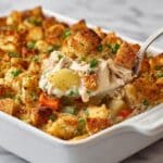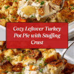 This Leftover Thanksgiving Turkey Pot Pie with a stuffing crust transforms your holiday leftovers into a comforting, hearty dish. Creamy turkey filling with vegetables is topped with a golden baked stuffing crust, making it perfect for a cozy meal after the holiday bustle.