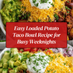 This Loaded Potato Taco Bowl combines crispy roasted potatoes with seasoned ground meat, black beans, and fresh toppings for a hearty, flavorful meal. It’s a perfect weeknight dinner that feels like a fiesta in every bite.