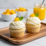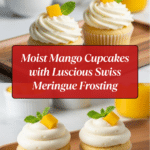 Keywords: Mango cupcakes, vanilla cupcakes, Swiss meringue buttercream, tropical desserts, mango frosting