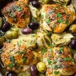 Keywords: Mediterranean chicken, lemon chicken, artichokes, olives, one-pan chicken, healthy dinner, lemon garlic chicken, skillet chicken recipe