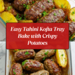 Tahini Kofta is a flavorful Middle Eastern dish featuring seasoned ground meat logs baked with tender potatoes and topped with a creamy tahini sauce. This tray bake is both comforting and impressive, perfect for a family dinner or entertaining guests.