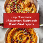 Muhammara is a vibrant Middle Eastern roasted red pepper and walnut dip known for its rich, smoky flavor and creamy texture. This recipe combines roasted vegetables with spices, pomegranate molasses, and walnuts to create a perfect balance of sweet, tangy, and spicy notes, making it an ideal appetizer served with warm pita bread.
