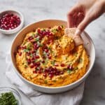 - Adjust and Serve: Taste the muhammara and adjust seasoning with extra salt or pomegranate molasses as needed. Spread the dip on a serving platter, drizzle with extra virgin olive oil, and garnish with ½ cup pomegranate seeds and chopped flat-leaf parsley. Serve alongside warm pita bread for dipping.
