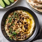 Keywords: Musabaha, chickpeas, tahini, Middle Eastern dip, warm chickpeas, pine nuts, Aleppo pepper, vegetarian appetizer