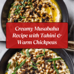Musabaha is a creamy and warm Middle Eastern chickpea dish made with tahini, lemon juice, and garlic, topped with toasted pine nuts and Aleppo pepper flakes. This comforting and flavorful dish is perfect as a hearty appetizer or a protein-rich snack, combining smooth and chunky textures with a fragrant, spicy finish.