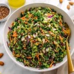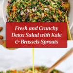 A vibrant and nutrient-packed detox salad featuring a medley of finely chopped kale, broccoli, brussels sprouts, red cabbage, and carrots, tossed with crunchy almonds, sunflower seeds, and a zesty lemon-ginger Dijon dressing. This salad is perfect for a healthy boost, rich in fiber and vitamins, and easy to prepare with a food processor.