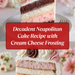 The Neapolitan Cake is a delightful treat that combines the classic flavors of chocolate, strawberry, and vanilla in one beautiful, layered dessert. Perfect for celebrations or a special weekend bake, this cake offers a rich and creamy experience with a smooth cream cheese frosting.