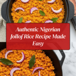 Nigerian Jollof Rice is a vibrant and flavorful one-pot dish loved across West Africa. Made with a rich tomato and pepper sauce, fragrant spices, and perfectly cooked rice, it’s a comforting meal that’s both easy to prepare and delicious to enjoy.