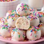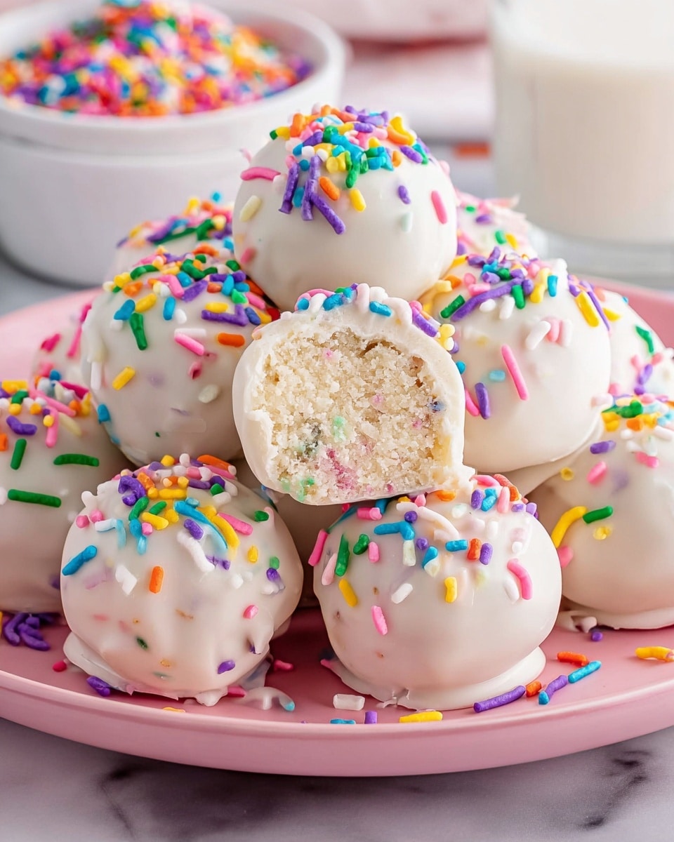 No Bake Cheesecake Bites are a fun and easy treat featuring a creamy cheesecake center mixed with colorful Funfetti cake mix. These bite-sized delights are perfect for parties or a sweet snack, and they require no oven time, making them a quick and hassle-free dessert option.