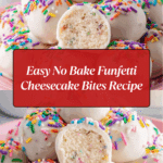 Keywords: No Bake Cheesecake Bites, Funfetti Cheesecake, Cream Cheese Dessert, Easy No Bake Desserts, Party Snacks, Funfetti Cake Mix Recipes