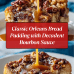 Orleans Bread Pudding with Bourbon Sauce is a classic Southern dessert that combines rich custard-soaked bread with warm spices and a luscious, boozy sauce. Perfect for cozy evenings or special occasions, this comforting dish is sure to impress your guests.
