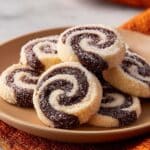 Peppermint Swirl Cookies are festive, visually striking treats featuring a vibrant red and white swirl pattern and a refreshing peppermint flavor. These soft and buttery cookies are rolled into a log, chilled to maintain their shape, then sliced and baked to perfection. Coated with coarse sugar or crushed peppermint candies, they deliver a delightful crunch complemented by a cool, minty sweetness, making them an ideal holiday or special occasion cookie.