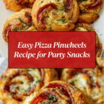 Pizza Pinwheels are a fun and easy appetizer made with crescent roll dough, pizza sauce, pepperoni, and mozzarella cheese. These bite-sized snacks feature a crispy golden crust filled with classic pizza flavors, perfect for parties or a family treat.