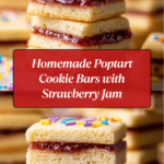 These Poptart Cookie Bars combine the nostalgic flavors of your favorite toaster pastry into a fun, homemade treat. With a buttery cookie base, a sweet strawberry filling, and a glossy vanilla glaze topped with rainbow sprinkles, they’re perfect for a snack or dessert.