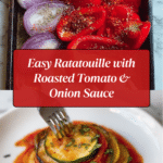 Ratatouille with Roasted Tomato–Onion Sauce is a vibrant and comforting vegetable dish that highlights the fresh flavors of summer produce. This classic French recipe features a rich, roasted sauce topped with beautifully arranged layers of eggplant, zucchini, and tomatoes. Perfect as a side or a light main, it’s both visually stunning and delicious.