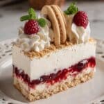 Ravishing Raspberry and White Chocolate Semifreddo is a luscious, no-bake Italian frozen dessert featuring layers of creamy white chocolate semifreddo, a vibrant raspberry filling, and crunchy sweet biscuit crumbs. This elegant treat combines the tartness of fresh raspberries with the sweet richness of white chocolate, all encased in a silky, airy mousse-like base, perfect for impressing guests or enjoying as a refreshing summer dessert.