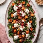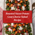 This Roast Sweet Potato Goat Cheese Salad is a delightful combination of warm, roasted sweet potatoes and creamy goat cheese, balanced with peppery arugula and a tangy balsamic dressing. Pine nuts add a toasty crunch, while pomegranate arils provide a burst of freshness, making it a perfect dish for any occasion.