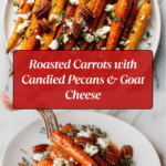 Keywords: roasted carrots, candied pecans, goat cheese, maple syrup, side dish, vegetarian, holiday recipes, easy vegetable recipe