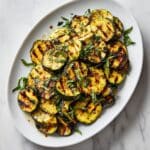 This Roasted Zucchini Salad is a simple and flavorful way to enjoy fresh summer zucchini. Tender grilled zucchini strips are tossed in a bright, lemony garlic dressing, making a light and refreshing dish perfect for any season.